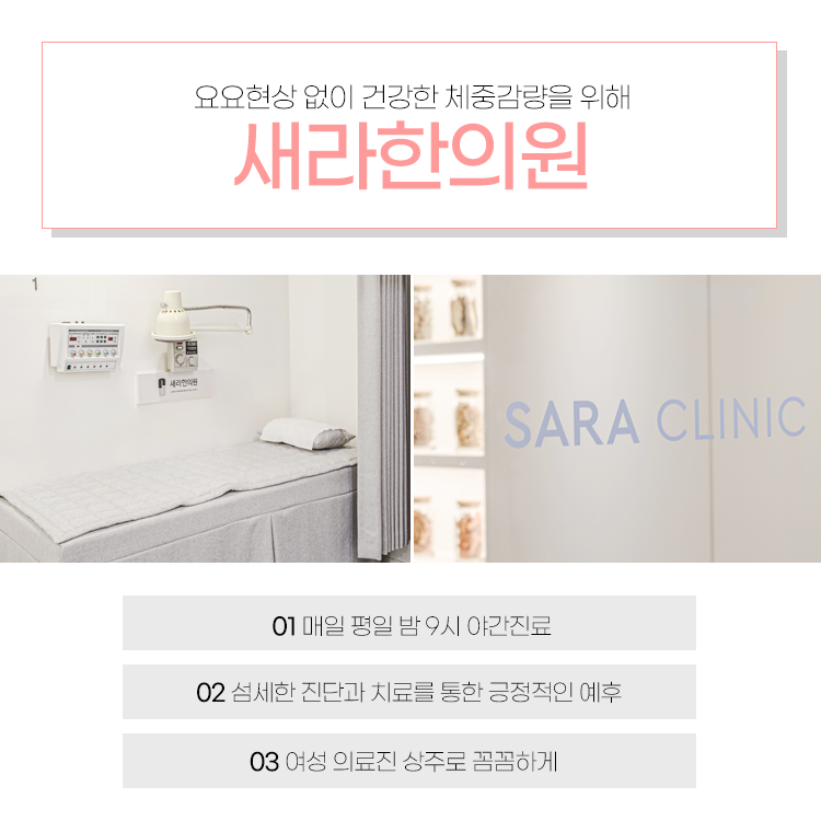 어려운 부분은 혼자서도 진행할 수 있도록 한약을 추천합니다. 사라한의원의 다이어트 한약은 식욕을 억제하고 체지방 연소에 도움을 줍니다. 정확한 진단을 통해 목표 체중을 설정하고 그에 맞는 한약을 처방합니다. 기초대사량을 높이고 부족한 영양소를 보충할 수 있습니다.