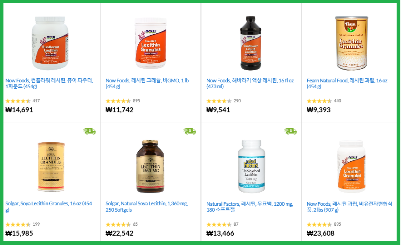 레시틴은 지방간 예방 비타민으로 알려진 콜린 생성을 돕는다. 또한 이노시톨이 함유되어 있습니다. 간기능 개선에 도움을 줍니다. 그 외에도 당뇨병, 남성 정력, 피부미용에도 효과가 있다. 잘 알려진. 대두 레시틴 레시틴은 대두와 달걀 노른자(달걀 노른자)에 다량 함유되어 있으며, 대두에는 양질의 단백질이 함유되어 있고, 불포화지방산의 비율이 높으며, 영양성분이 우수한 불포화지방산이 함유되어 있다고 합니다. 일일 섭취량 레시틴의 일일 섭취량은 1.2g에서 18g 사이입니다. 주의 사항 과도한 설탕 섭취는 레시틴의 흡수를 방해할 수 있습니다. 콩 알레르기나 계란 노른자 알레르기가 있는 사람은 주의해야 합니다. 추천 제품 호주에서 제조된 고급 세척 제품을 권장합니다. Welsh Health 레시틴 1200mg 200캡슐 레시틴 콩 추출물 호주산 레시틴 Made in Australia: 웰플레이스 Welsh Health 레시틴 1200mg 200캡슐 레시틴 콩 추출물 호주산 레시틴 smartstore.naver.com We get it from smartstore.naver.com