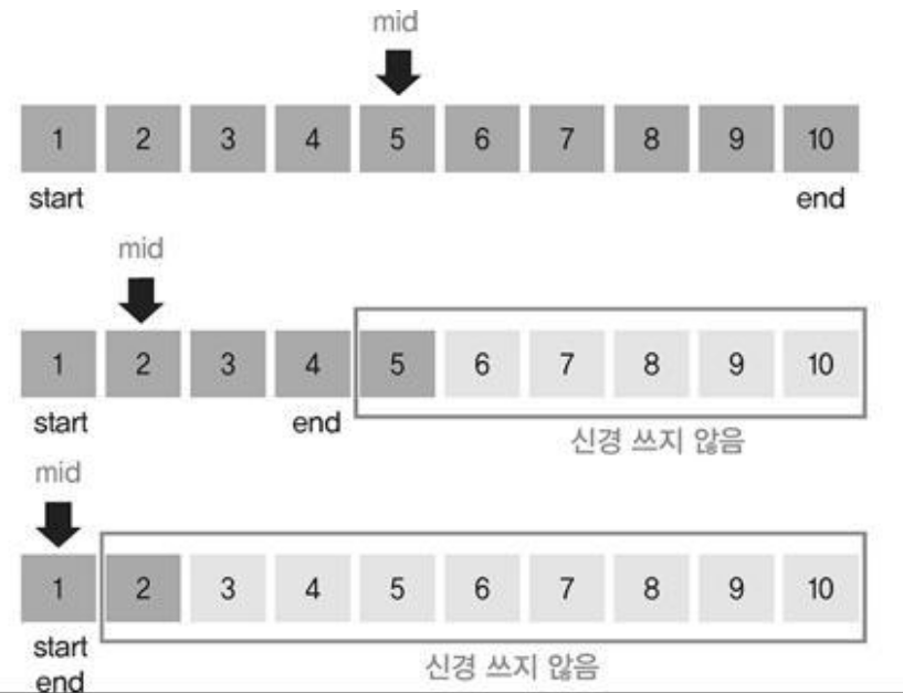1. 주어진 리스트의 처음 인덱스와 끝 인덱스를 처음에 받아 2로 나누어 중간값을 찾는다.