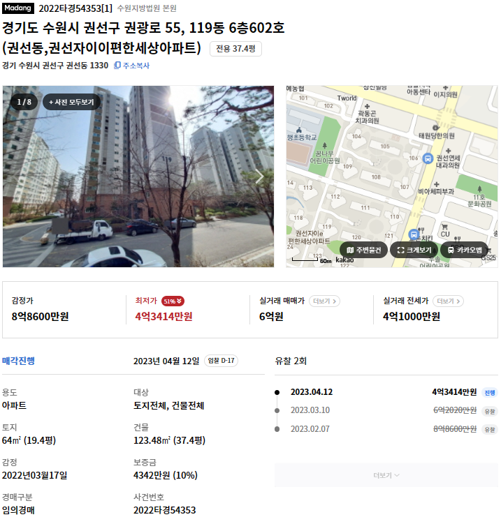 2022 수원시 권선구 타경 54353 아파 37.4평